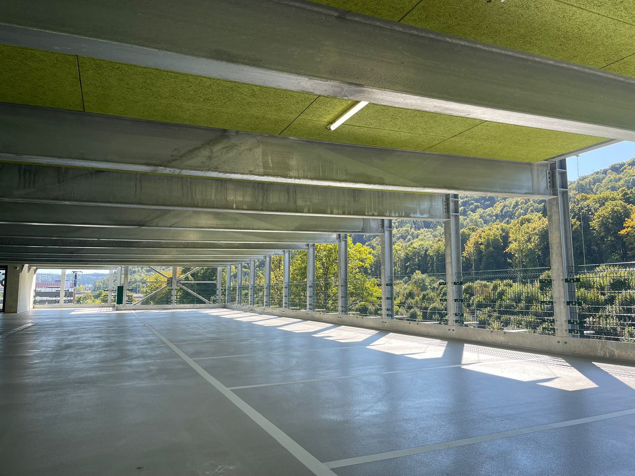 Das Parkhaus erstreckt sich über sieben Stockwerke und bietet eine Gesamtkapazität von 290 gedeckten Parkplätzen. Zusätzlich stehen 13 E‑Ladestationen zur Verfügung. Durch eine übersichtliche Gestaltung wird das Parkieren an der Schlosstalstrasse komfortabler denn je.